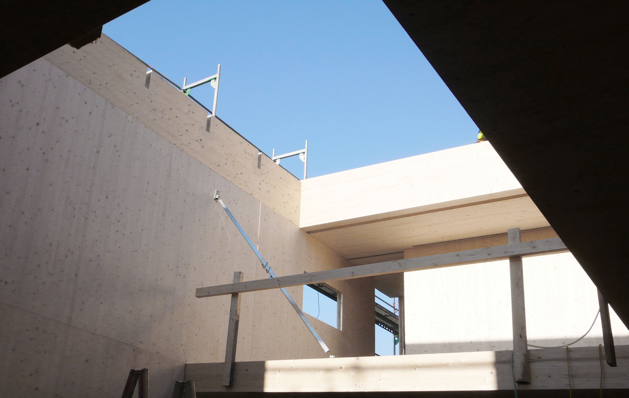 The monolithic character of the solid wood / CLT / cross laminated timber panels allows for a very efficient, innovative and fast construction, and can cover a wider range of aesthetic and technical requirements than concrete - additionally, wood is the only natural, renewable and sustainable building material, which is 100% ecologically reusable and effectively reduces CO2 emissions, a carbon sink.